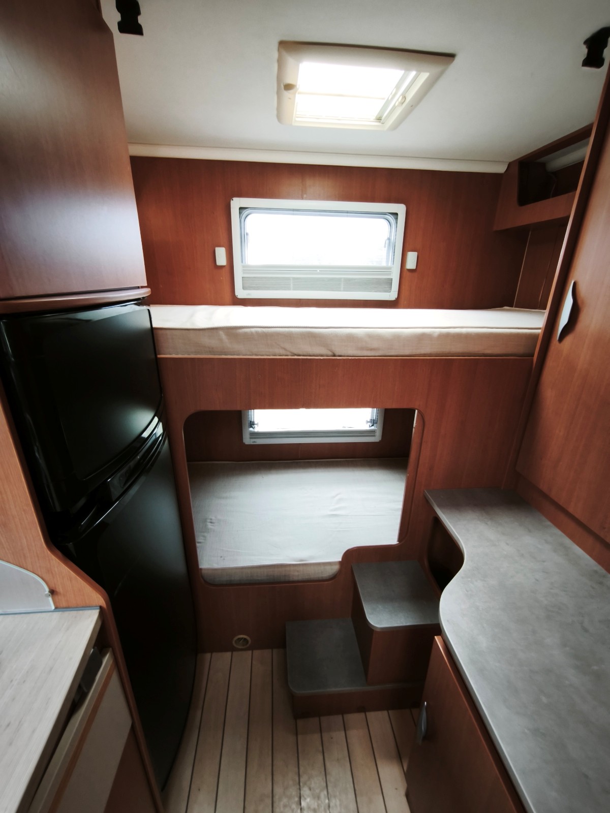 literas traseras (2) + cama capuchina doble (2) + cama salón grande doble (2)