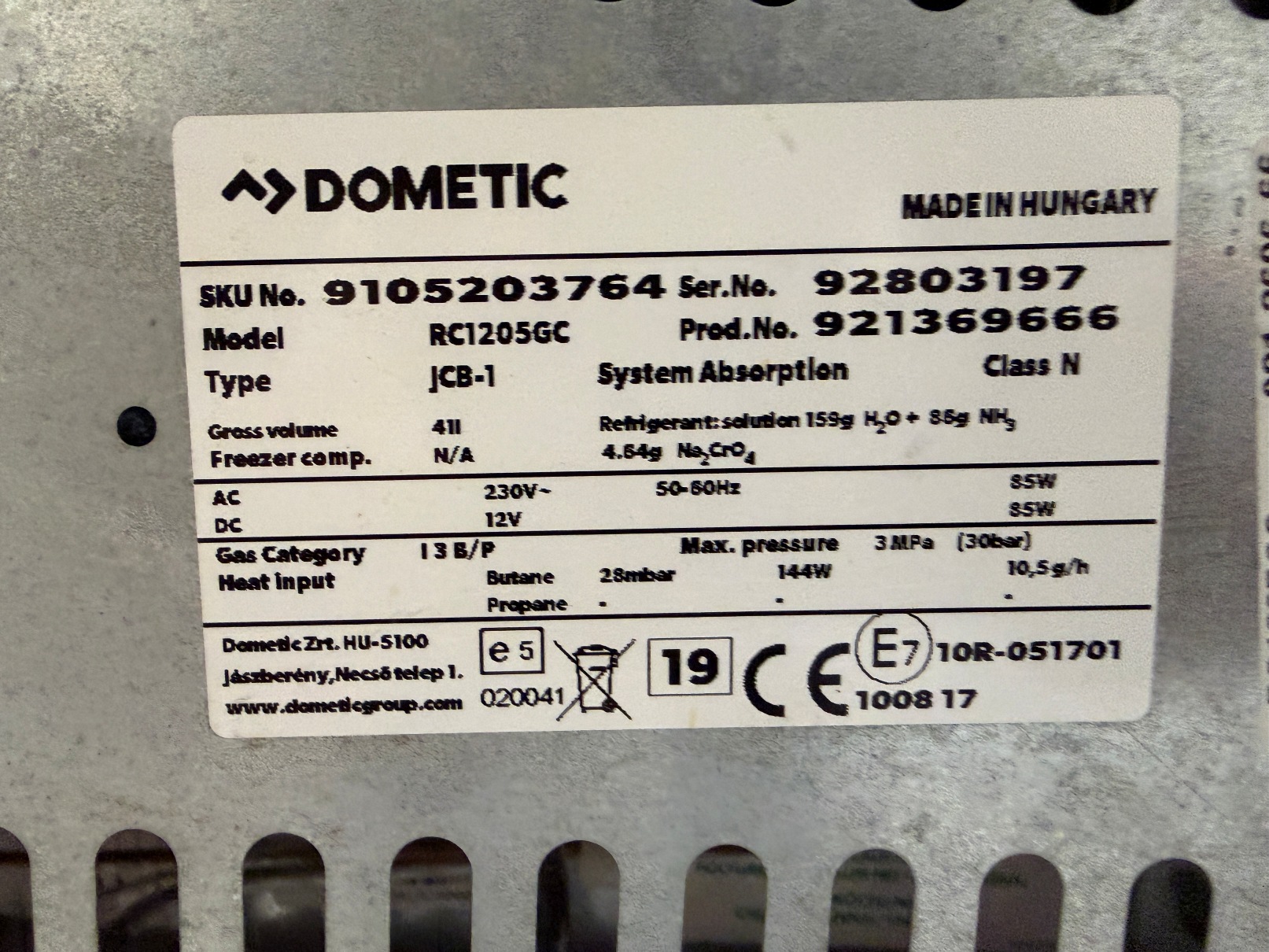 – FRIGORIFICO TRIVALENTE DOMETIC (FUNCIONA A GAS, 12 VOLTS Y 220 VOLST.)